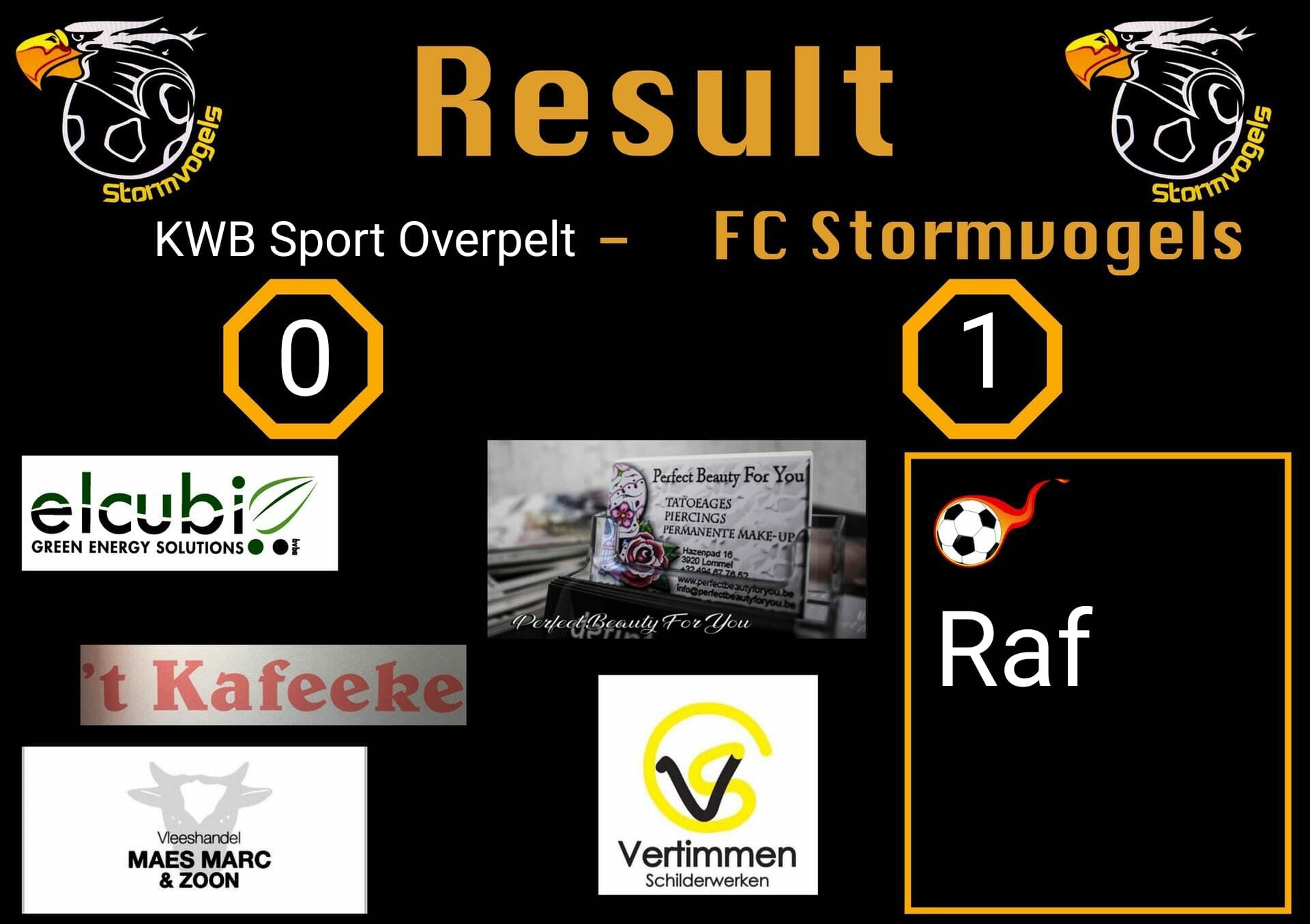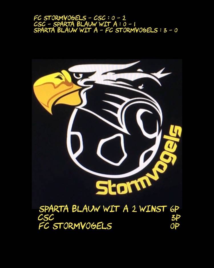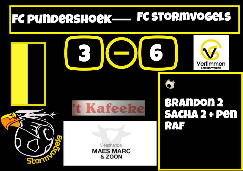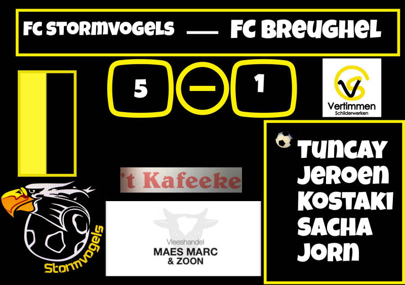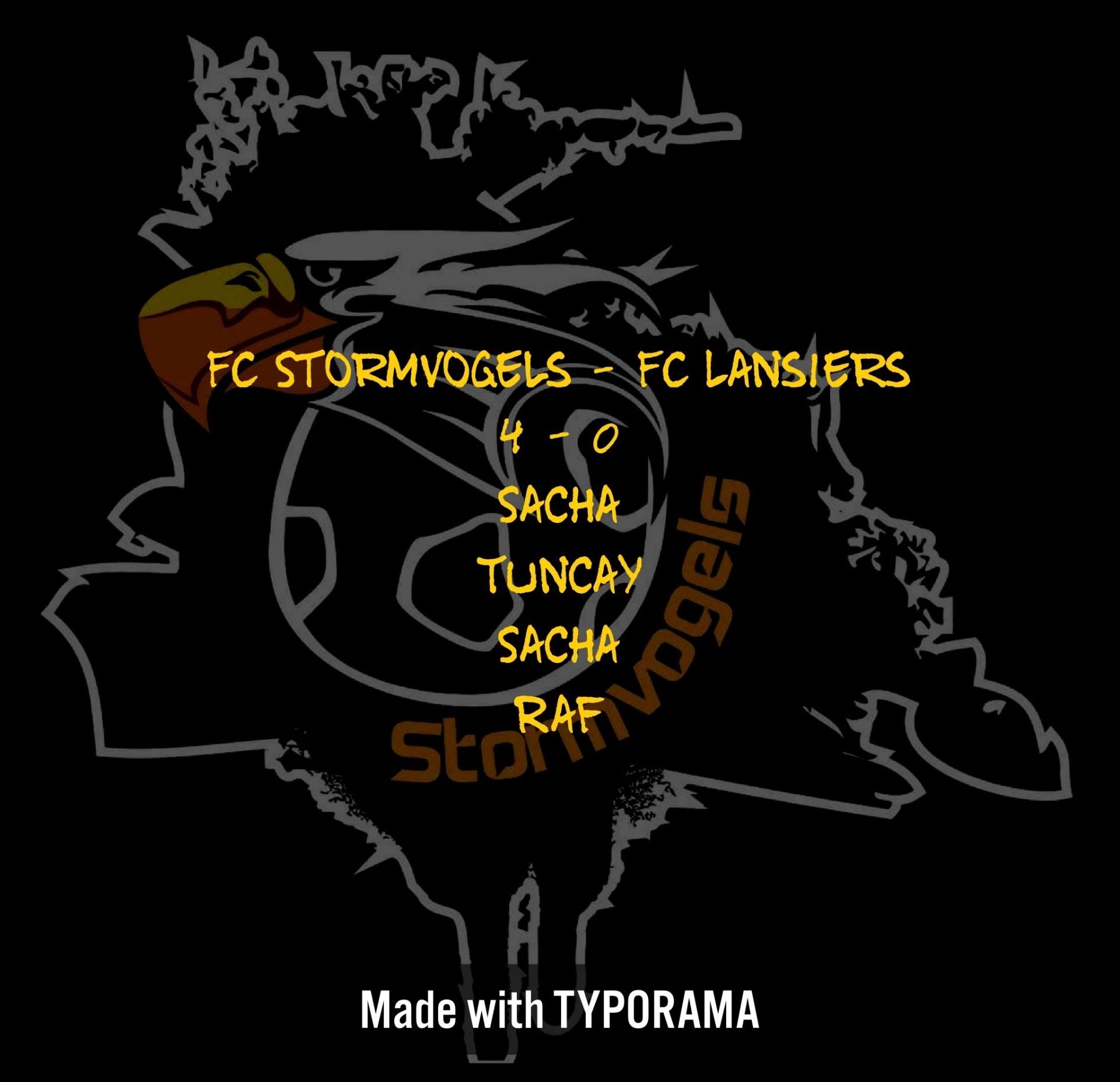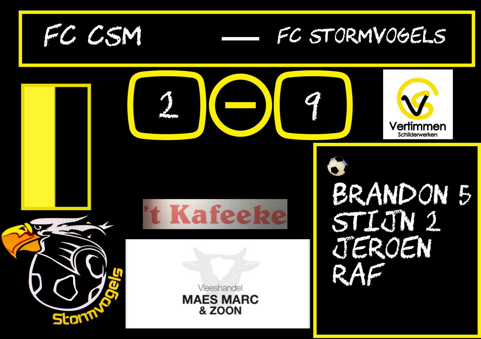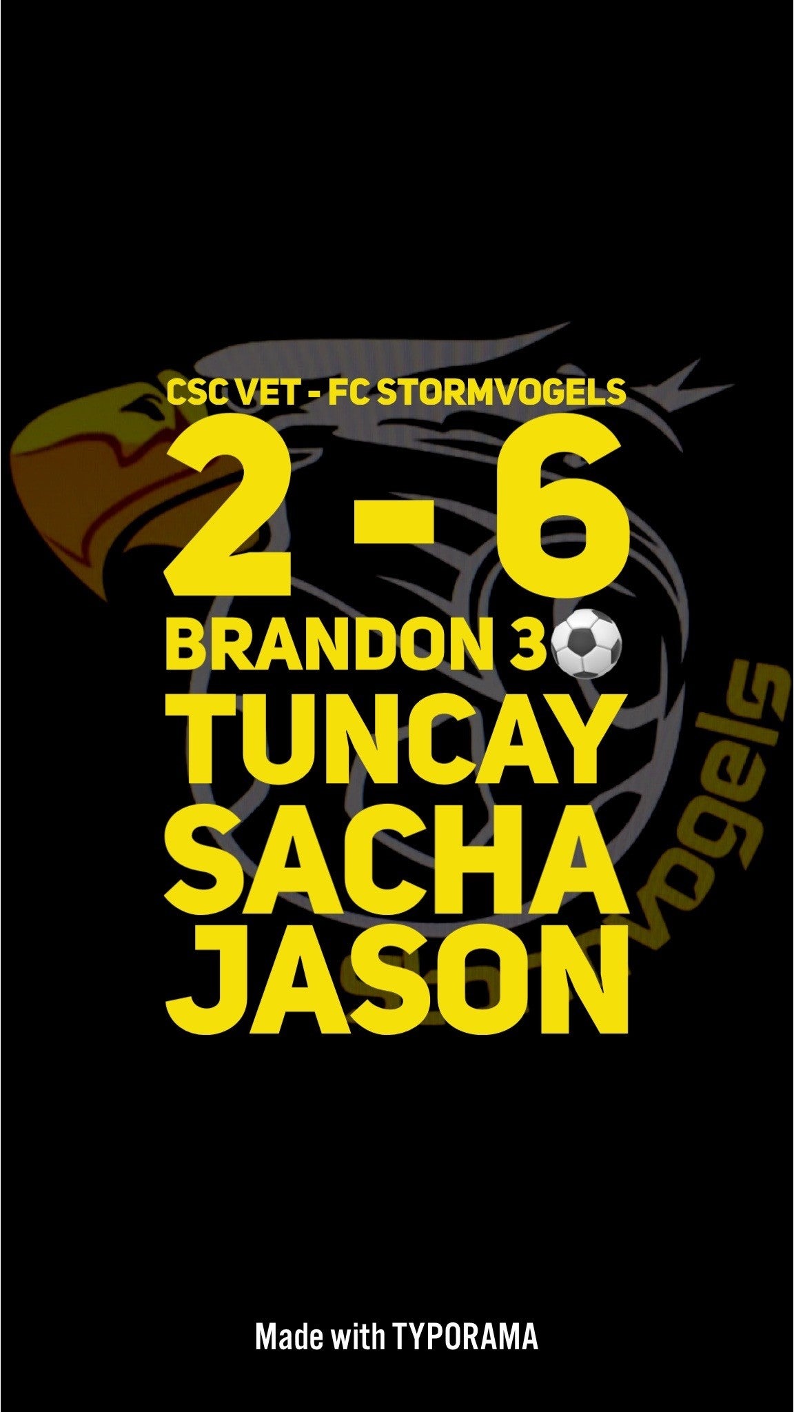 Een zeer goede match, sterk collectief van de Stormvogels. Andere ploeg kwam er niet aan de pas! 0 - 6 gewonnen met prachtige uitgevoetbalde doelpunten.