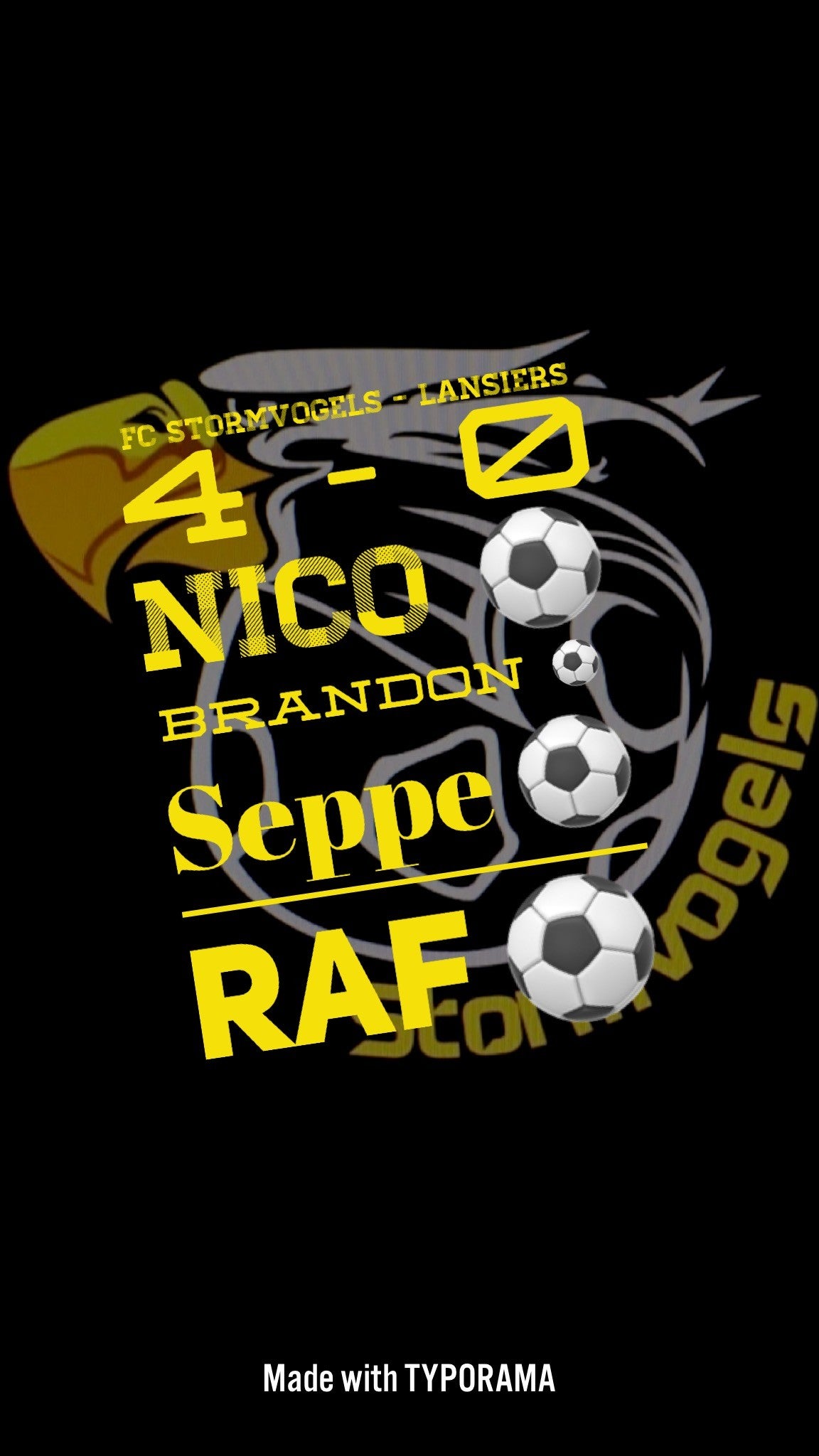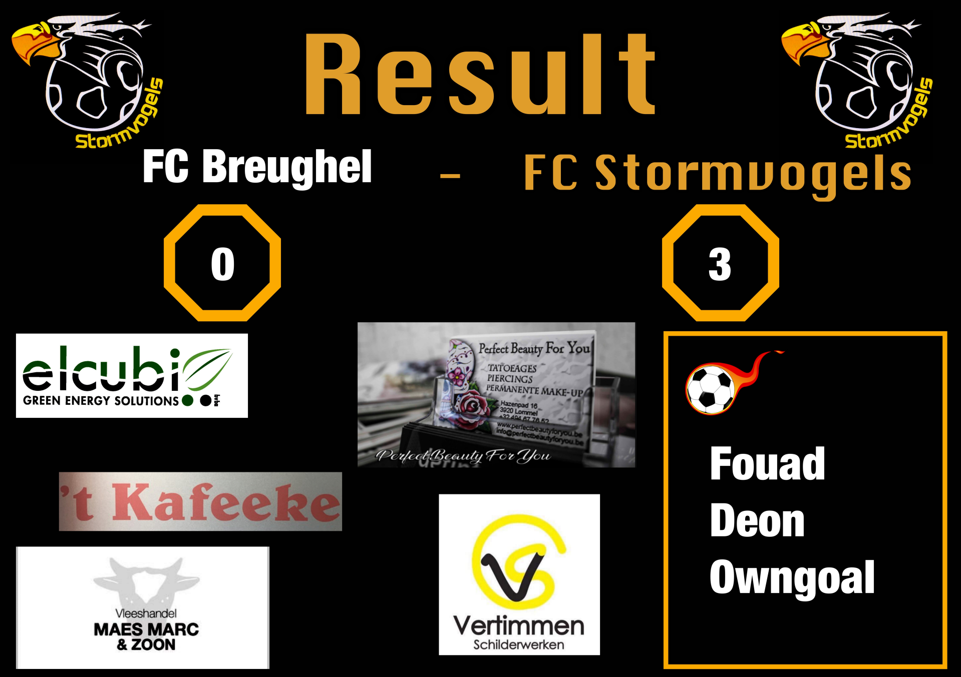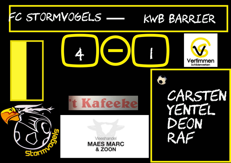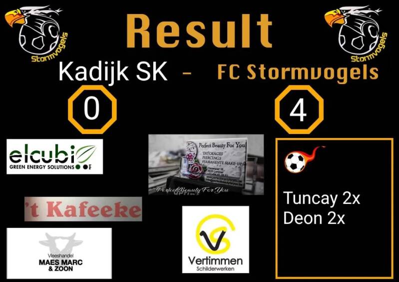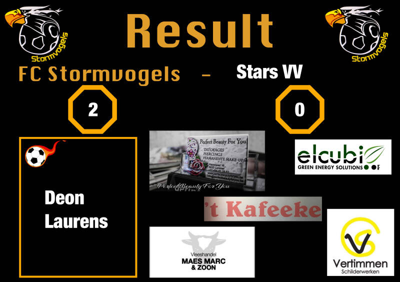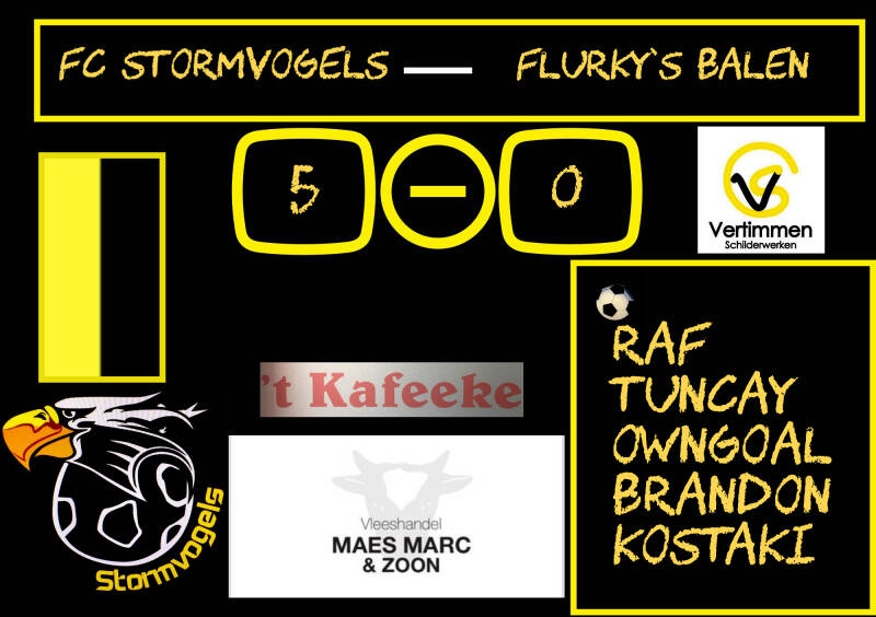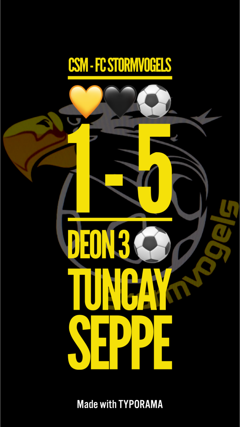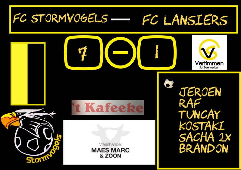 Een zeer goede match, sterk collectief van de Stormvogels. Andere ploeg kwam er niet aan de pas! 0 - 6 gewonnen met prachtige uitgevoetbalde doelpunten.