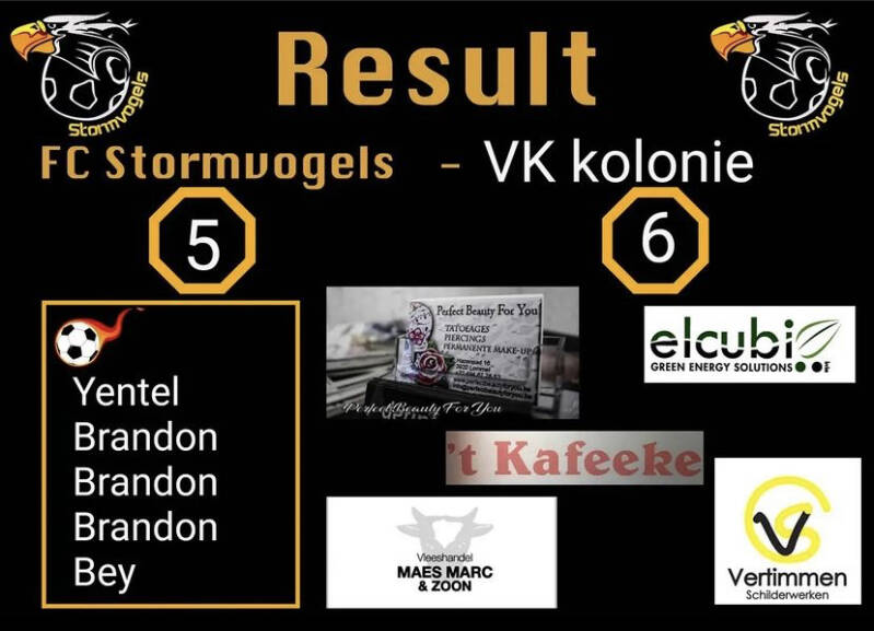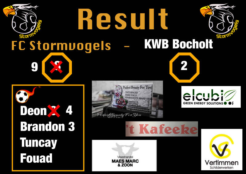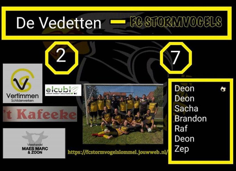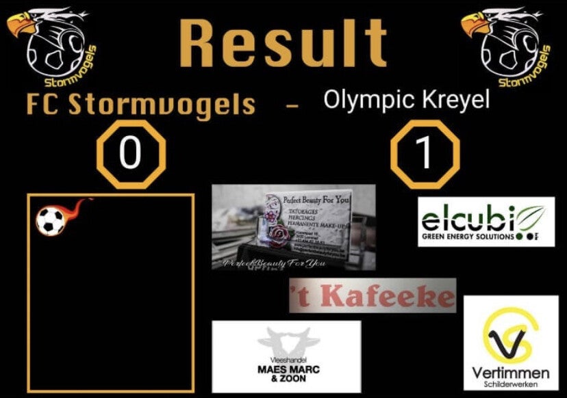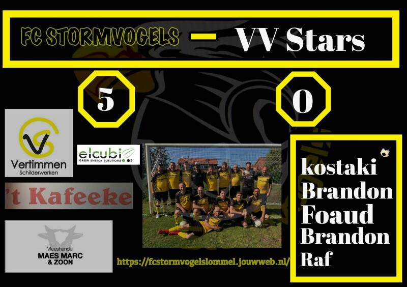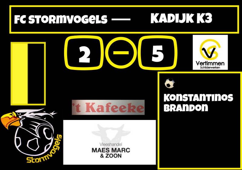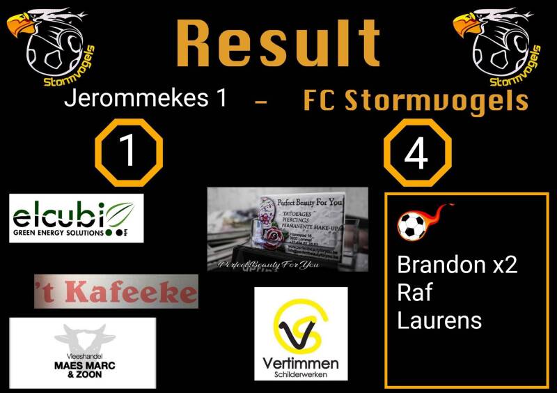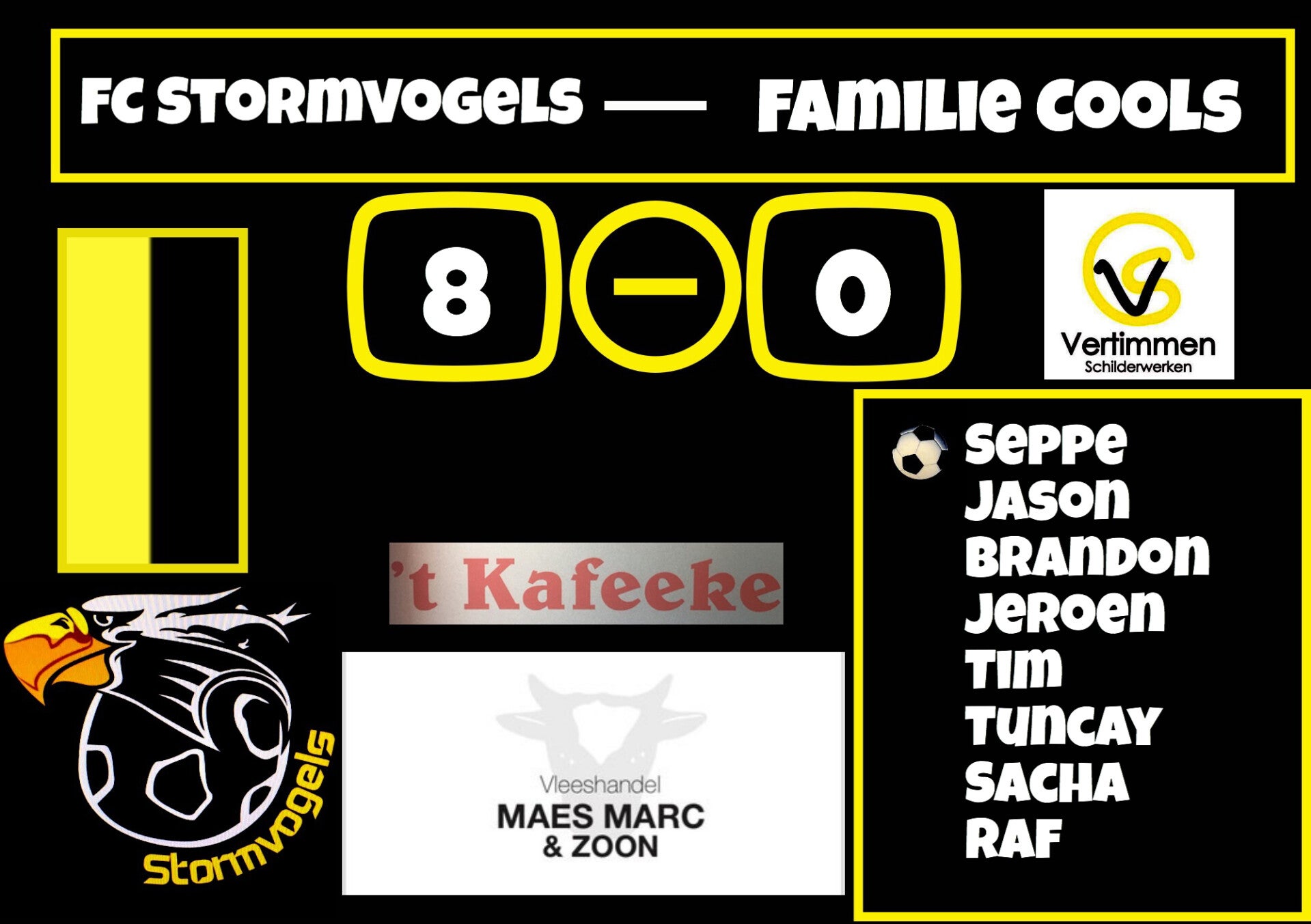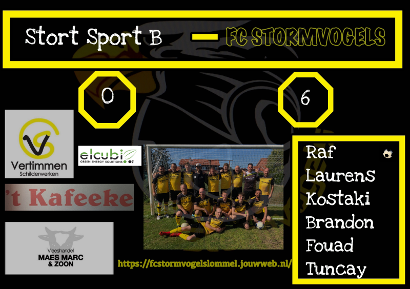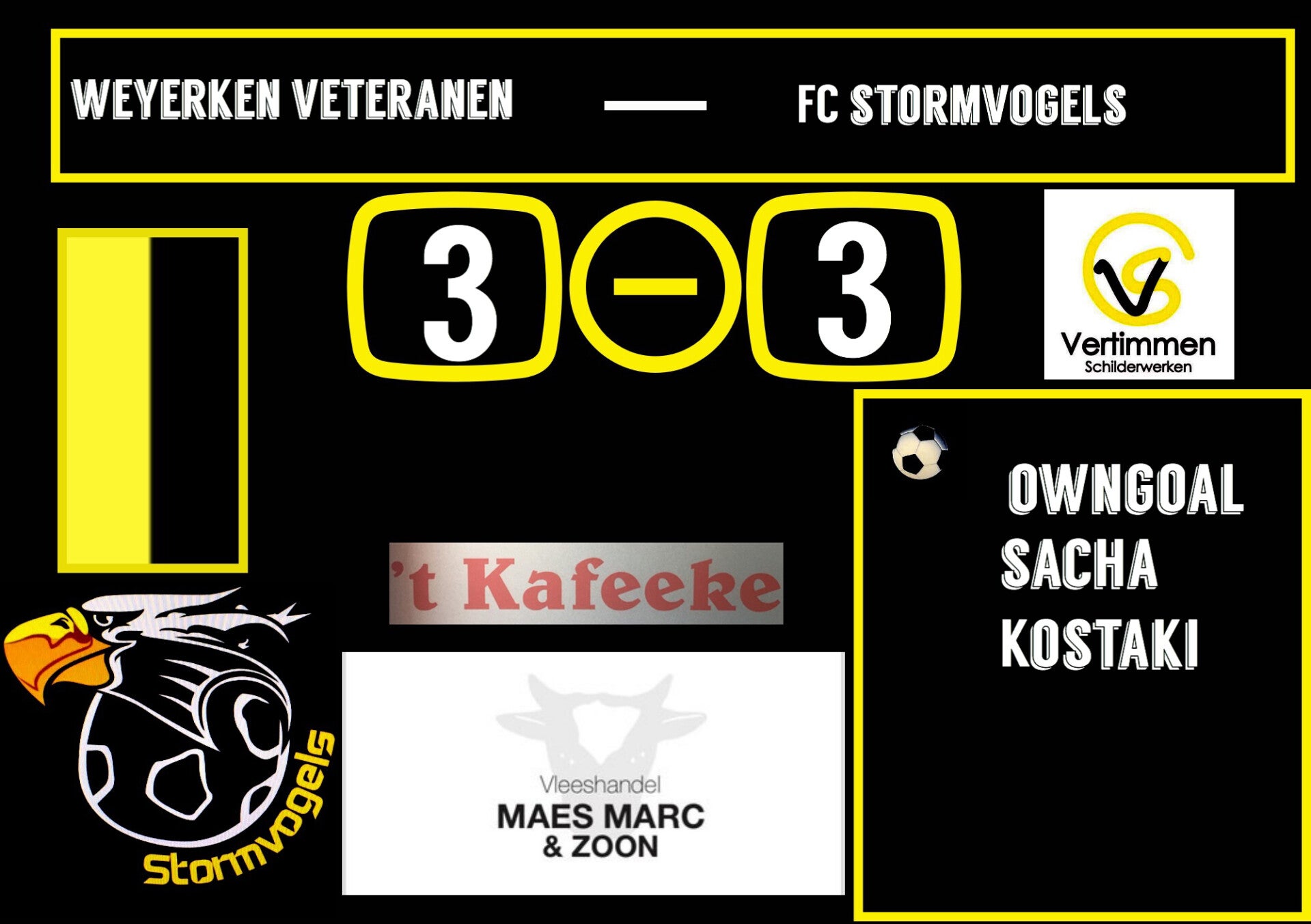 Een zeer goede match, sterk collectief van de Stormvogels. Andere ploeg kwam er niet aan de pas! 0 - 6 gewonnen met prachtige uitgevoetbalde doelpunten.