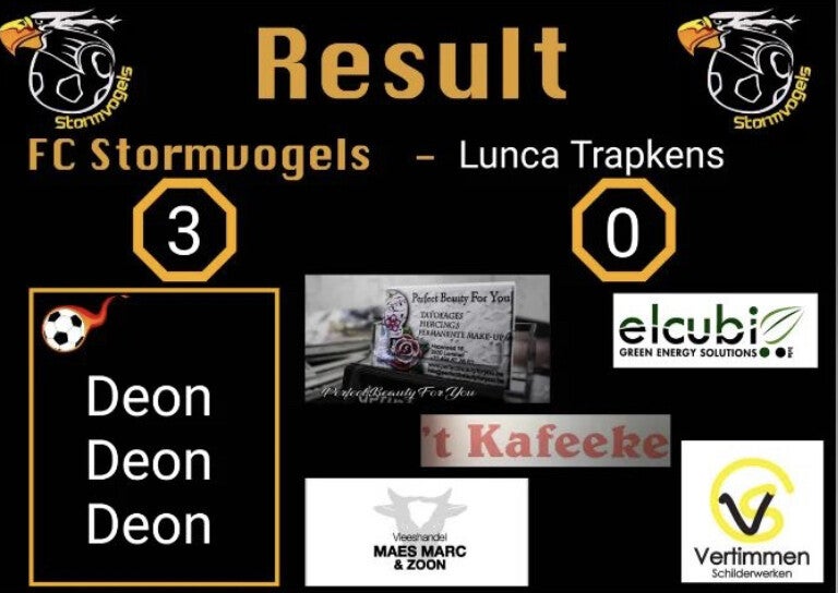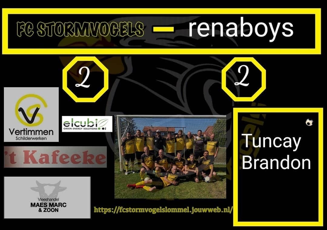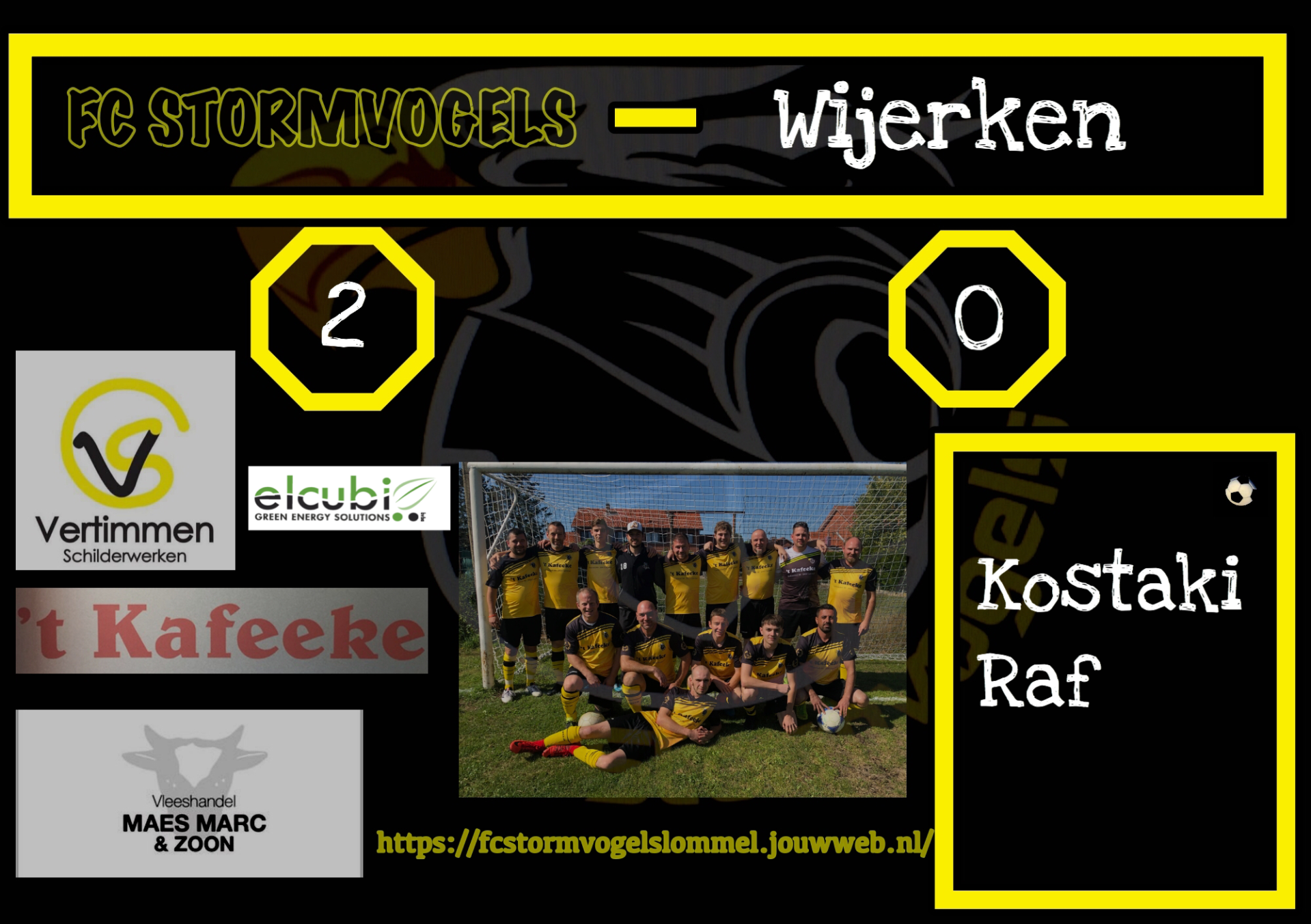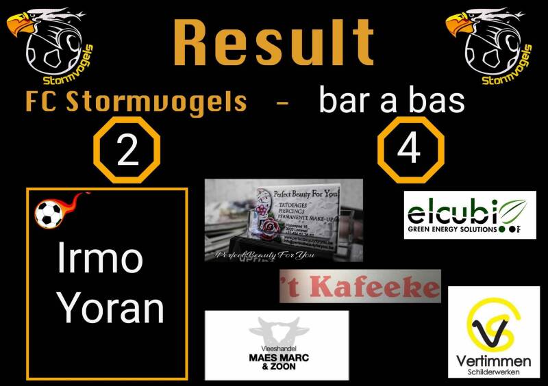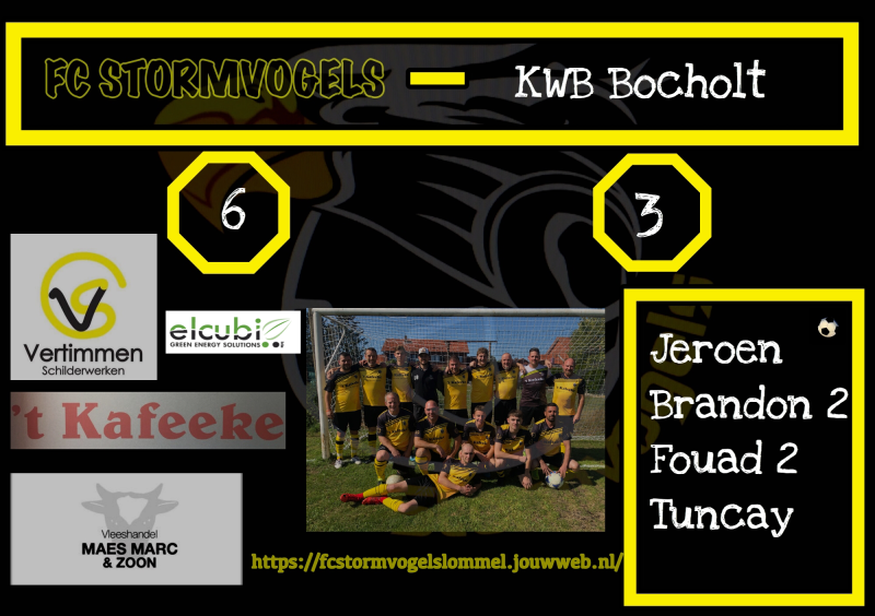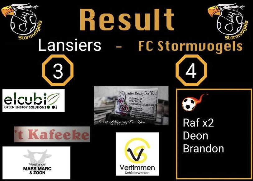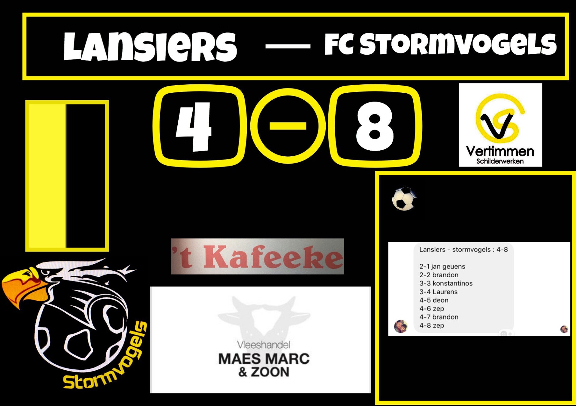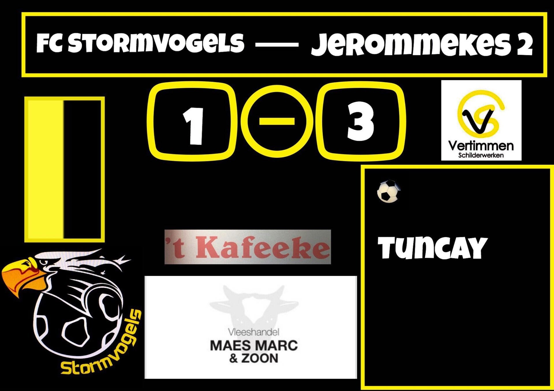 Een zeer goede match, sterk collectief van de Stormvogels. Andere ploeg kwam er niet aan de pas! 0 - 6 gewonnen met prachtige uitgevoetbalde doelpunten.
