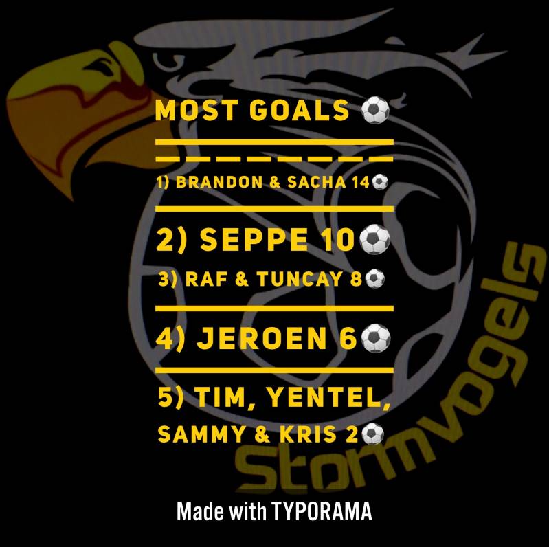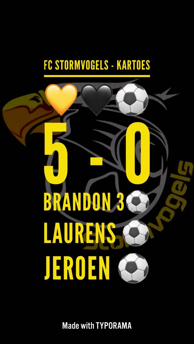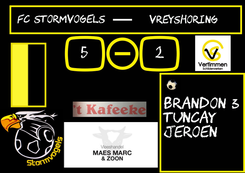 Wederom sterke Stormvogels vandaag! Iedereen ging er weer voor de volle 100% tegenaan en dat resulteerde in een 5-0 overwinning. Er werd geen spaander heel gelaten van Vreyshoring! Fijn om een Stormvogel te zijn.
