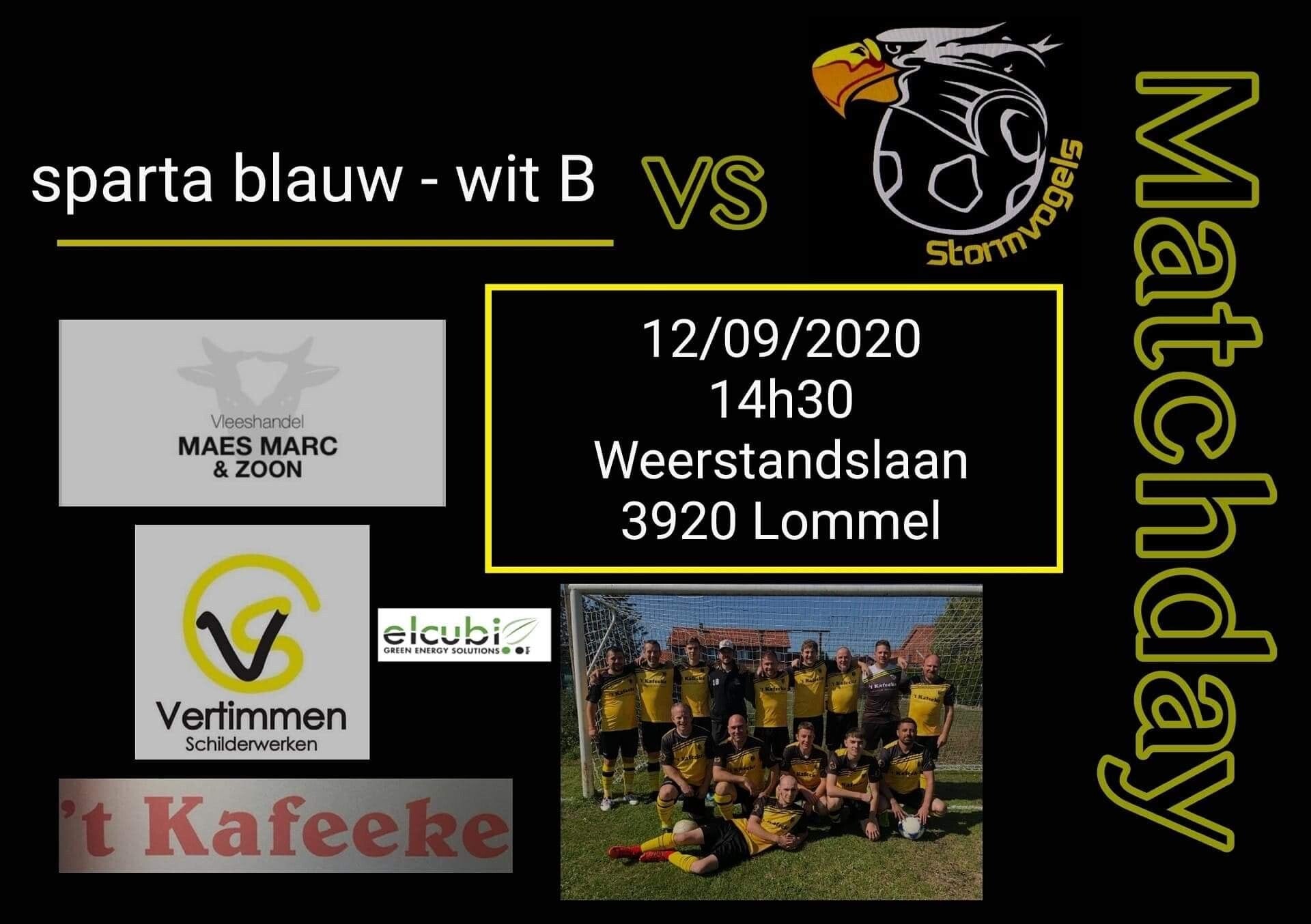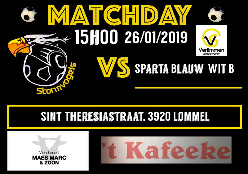 Na de 2e wedstrijd die deze maand afgelast werd door de sneeuw, hopen alle Stormvogels nu dat de weergoden ons vanaf nu elk weekend goed gezind zullen zijn. Dit weekend staat er een stevig duel op het programma, uit tegen Sparta Blauw-Wit Veteranen.