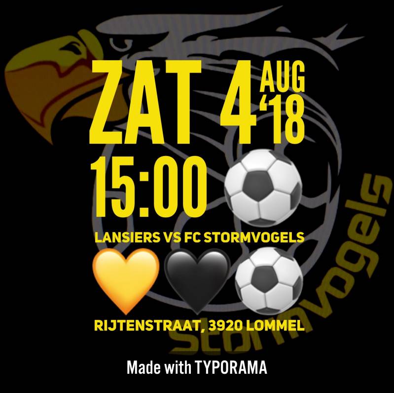 We zullen zien wat het wordt, tegen Stort Sport! Welke ploeg zal het zijn van de 2, het is dus tegen Stort Sport B! Rijmen kan zeker geen kwaad, een volgende overwinning is waar FC Stormvogels voor gaat.