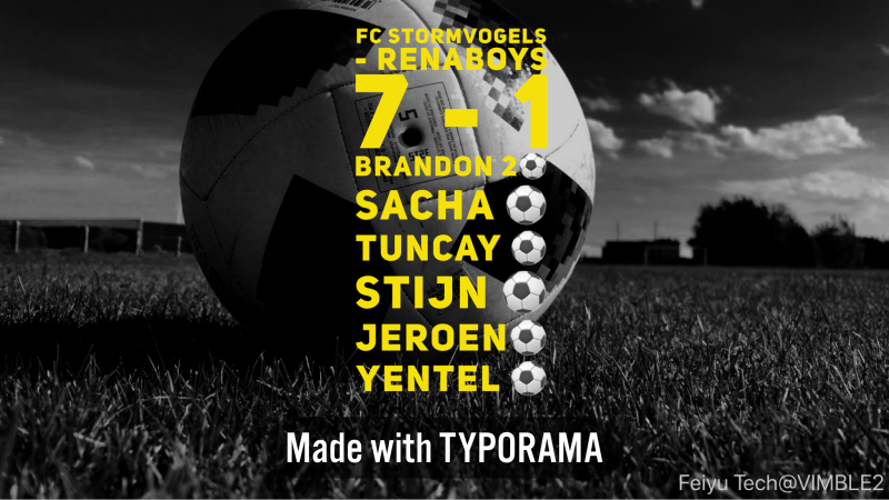 0 - 11 . We speelden tegen Vreyshoring, maar eigenlijk ook tegen een beetje Stormvogels. Vreyshoring had namelijk maar 8 spelers van hun eigen ploeg, 3 spelers van ons gingen hun verder helpen zodat we toch 11 tegen 11 konden voetballen. Verder zal ik het kort houden. Goed gevoetbald, mooi uitgespeelde kansen. Klasse werk iedereen, op naar volgende week.