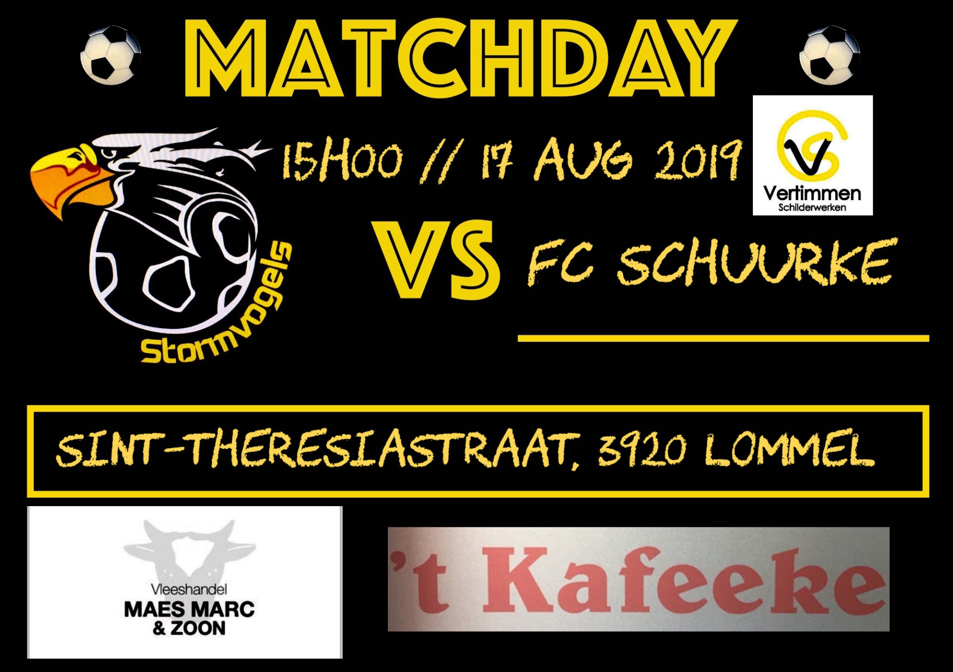 Hatsikidee! Daar zijn we weer, nieuwe affiche, volgende wedstrijd maar vooral next challenge! Met FC Schuurke staat er een taaie klant op het menu van alle Stormvogels! Laat er ons het beste van maken. Be there & support us!