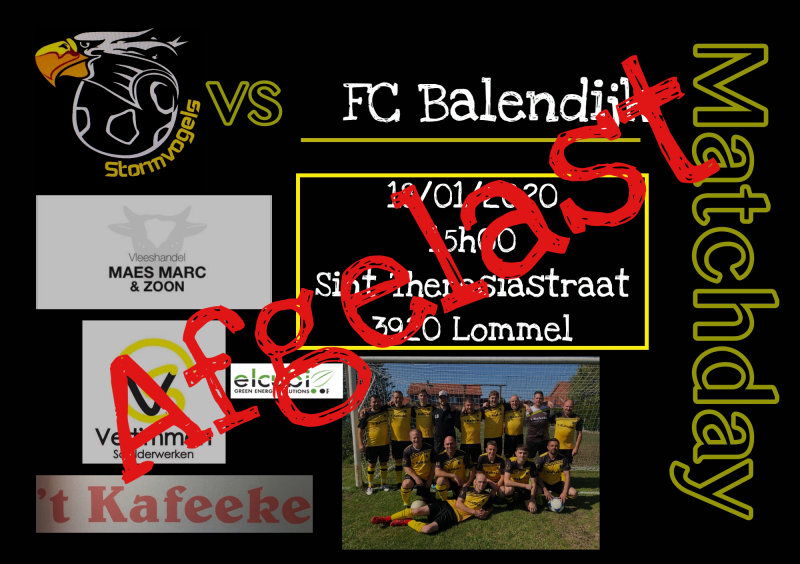 Allright! Komende zaterdag hebben we gelukkig nog een tegenstander kunnen vinden. Dit weekend stond nog leeg, dus bedankt aan diegene die deze ploeg heeft kunnen regelen. Het is een tijdje geleden dat we tegen deze ploeg hebben gespeeld. Hopelijk kunnen we onze goede prestatie van vorige week overdoen en de zogezegde 3 punten mee naar huis nemen. See you all deze zaterdag.